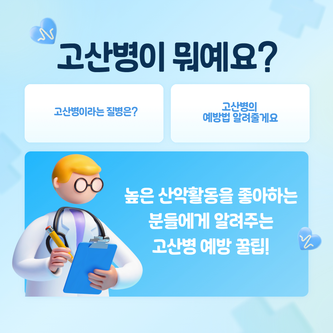 - 개인 차: 유전적 요소나 체질 등에 따라 고산병 발생 위험이 달라질 수 있습니다.