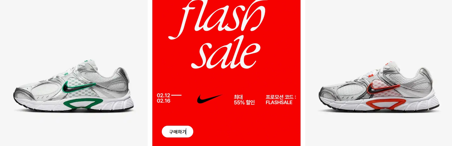 이번 나이키 FLASH SALE은 온라인과 매장에서 동시에 진행되며, 온라인에서는 최대 55% 할인된 제품 가격에 구매 금액별 추가 할인 혜택이 주어집니다.