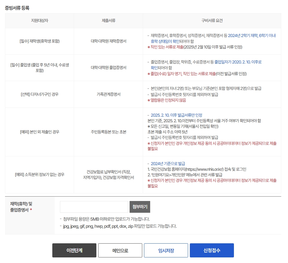 - 다자녀 가구 대학(원)생: 소득 제한 없이 혜택 적용