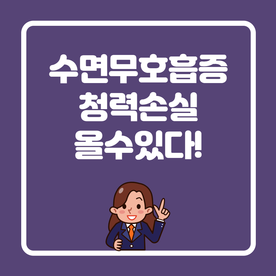 📢 💡 수면무호흡증, 더 이상 방치하지 마세요! 단순한 코골이가 아닙니다! 수면무호흡증은 청력 손실을 포함한 다양한 건강 문제를 유발할 수 있는 위험한 질환입니다.