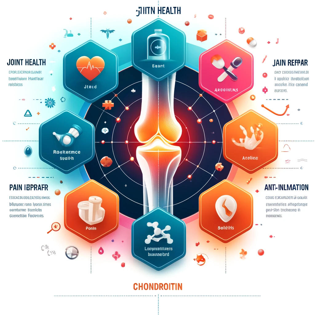 콘드로이친은 염증 매개체의 생산을 억제하여 염증 반응을 줄여줍니다. 이는 관절 주변 조직의 부종과 통증을 완화하는 데 도움이 됩니다.