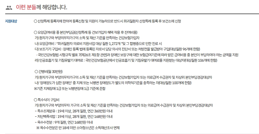 - 비급여 항목 지원 확대 치료와 관리에 필요한 필수적인 비급여 항목(검사비, 약제비 등)도 일부 지원되며, 재정적 부담이 큰 가족들에게 실질적인 도움을 제공합니다.
